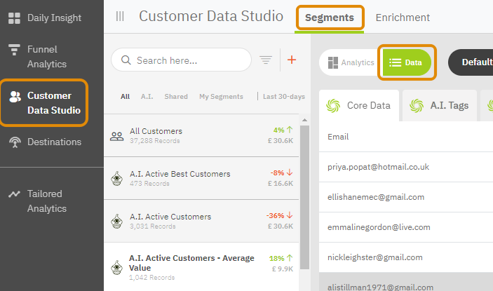 This article covers one of the two main views in the Segments tab of the Customer Data Studio (formerly Customer Data Studio). See our other article on the Analytics Panel.