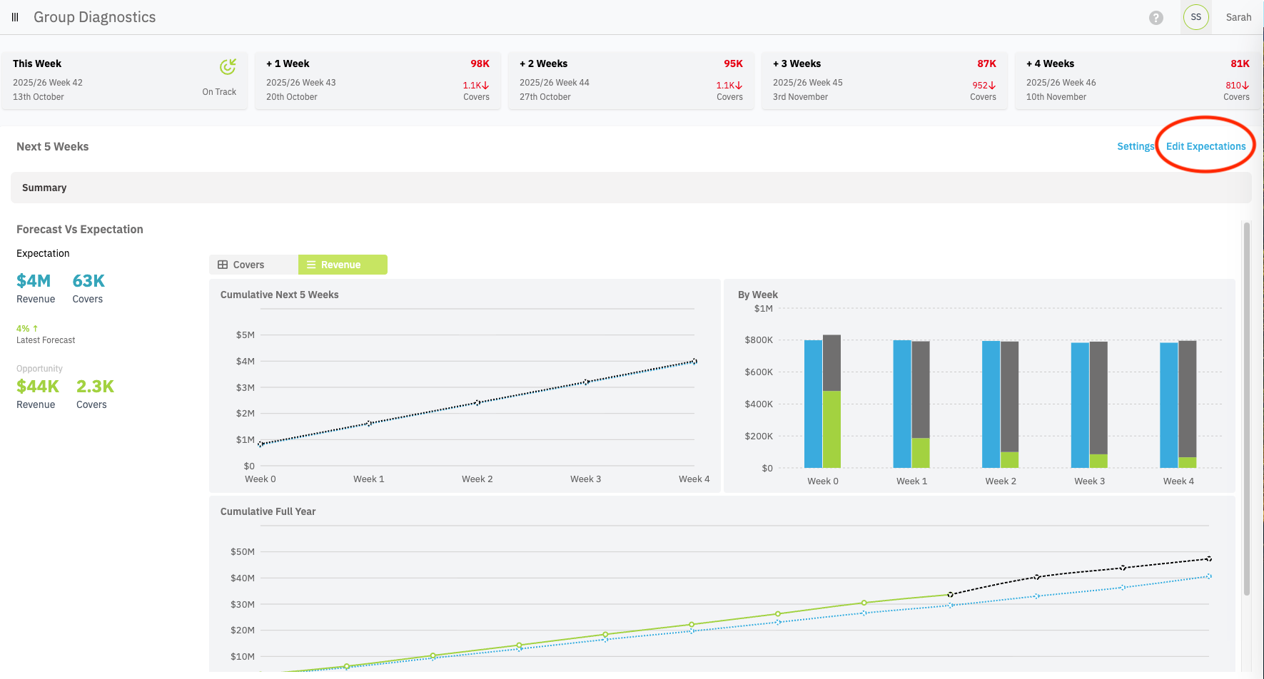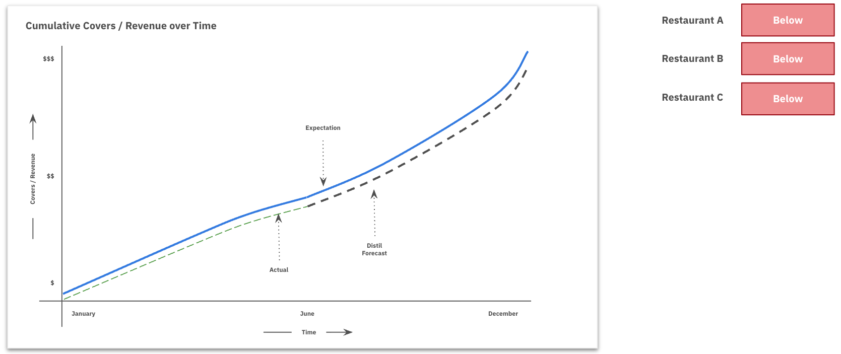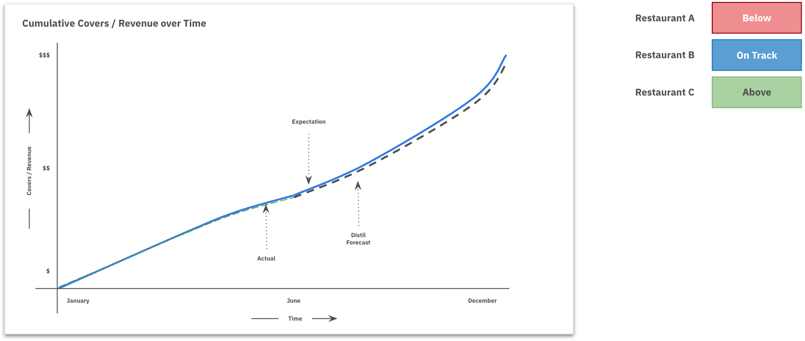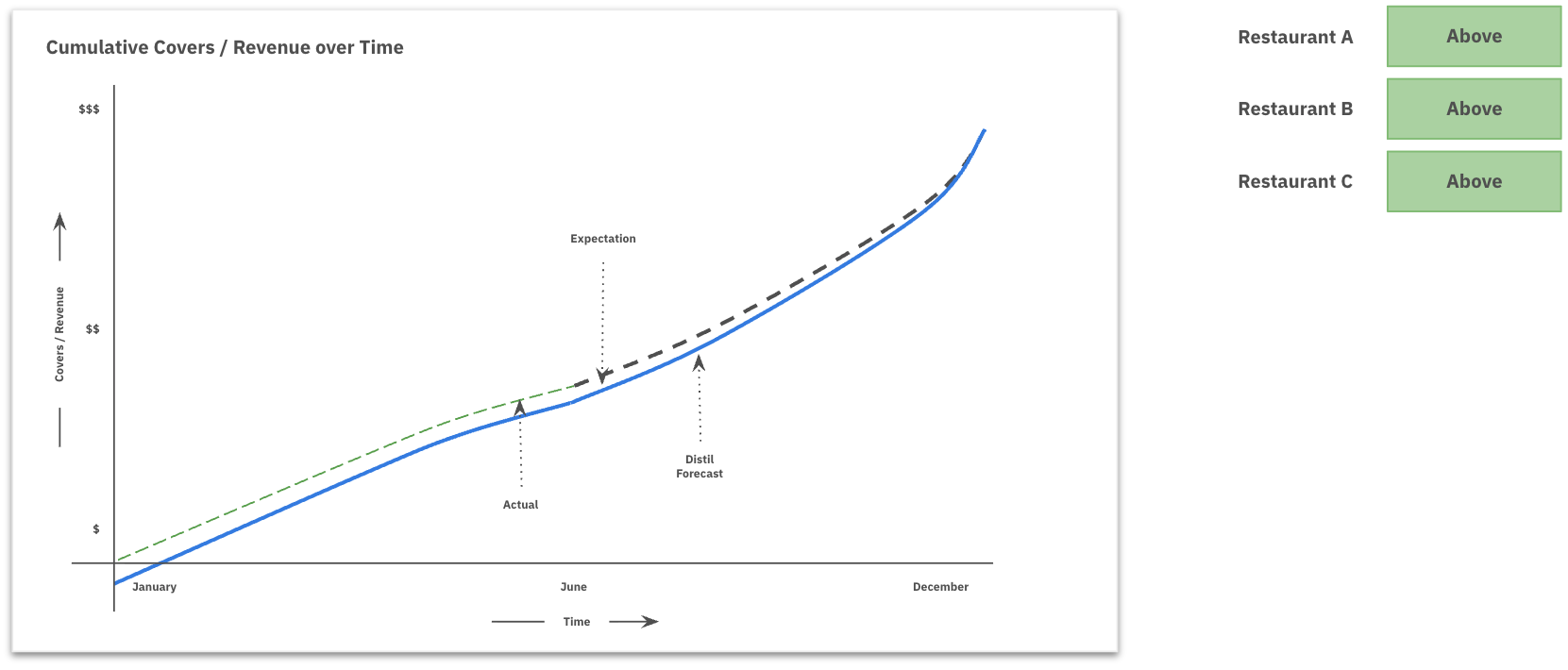 Within Distil, Expectations represent the evolving targets for each restaurant’s covers.