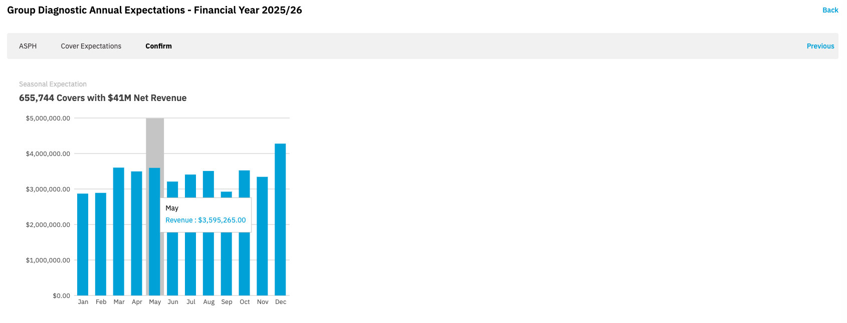 On the final screen, you will see your Expectations display as monthly revenue across the whole group.