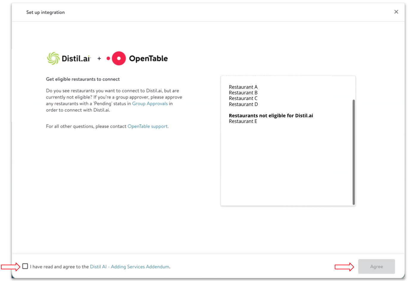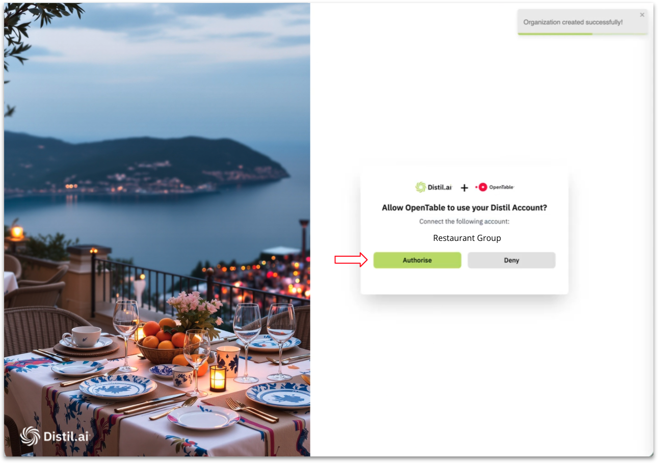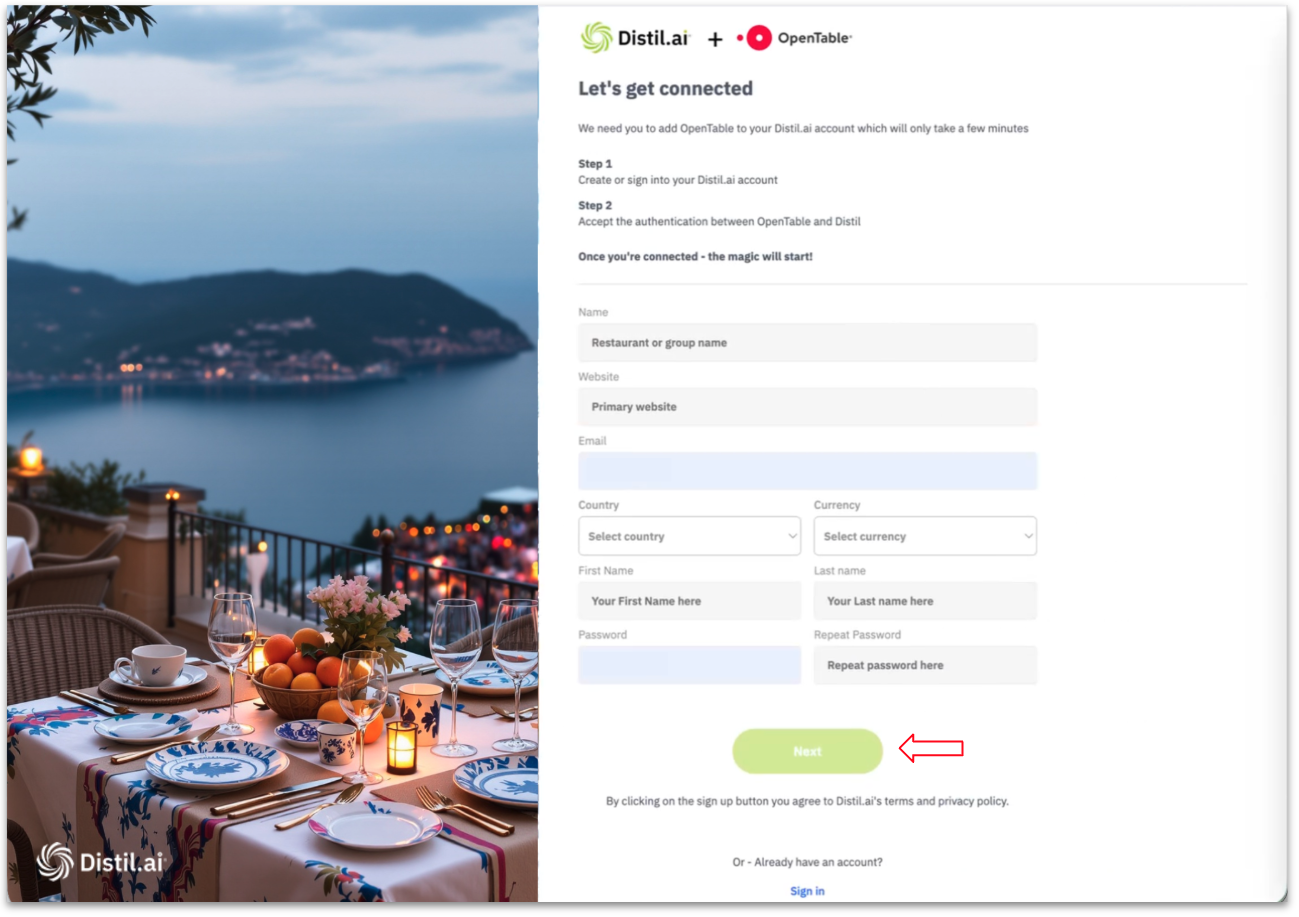Once your account has been created you will be asked to connect Distil AI and OpenTable.